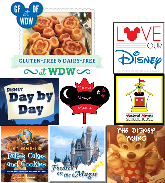We are very excited and honored to be celebrating the 4th birthday of our friends at Gluten Free and Dairy Free at WDW. Over the next month or so you will see exciting giveaways each week from some of our great Disney Friends listed in the picture above.